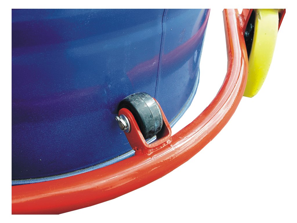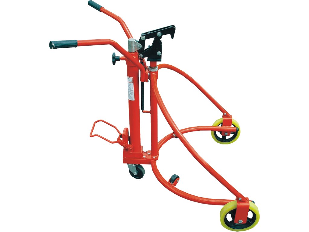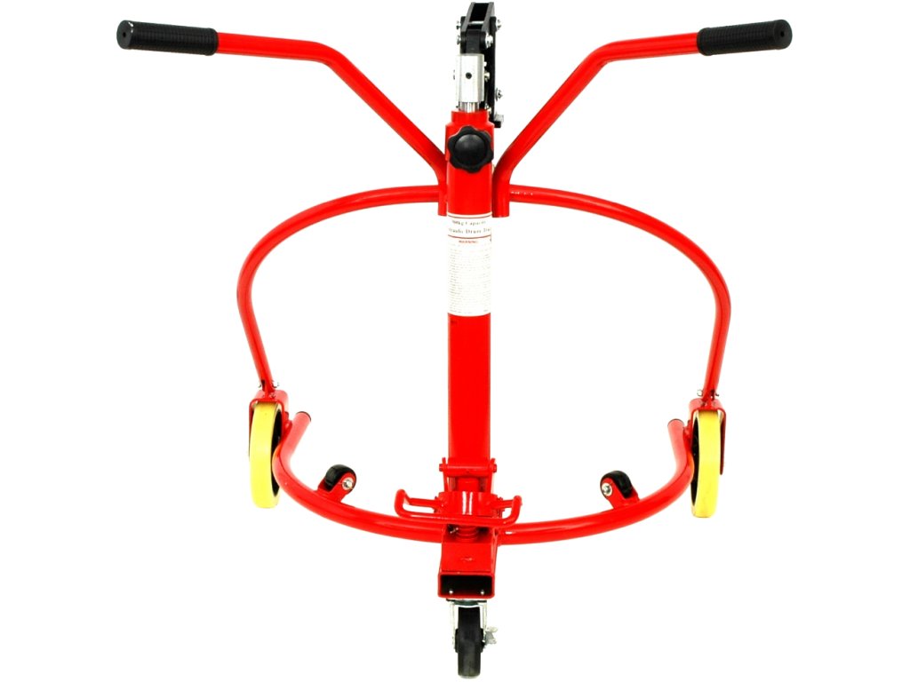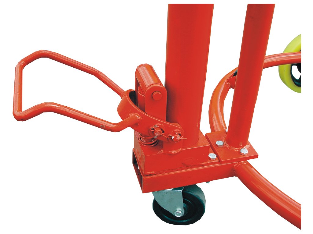Tragfähigkeit max. 300 kg, Fassdurchmesser 400 – 600 mm, Fasshöhe 760 – 800 mm, Hub 100 mm (hydraulische Fußpumpe).