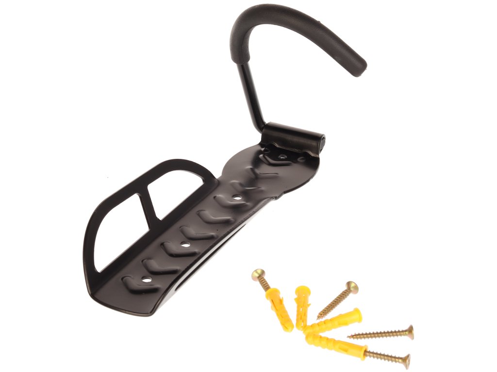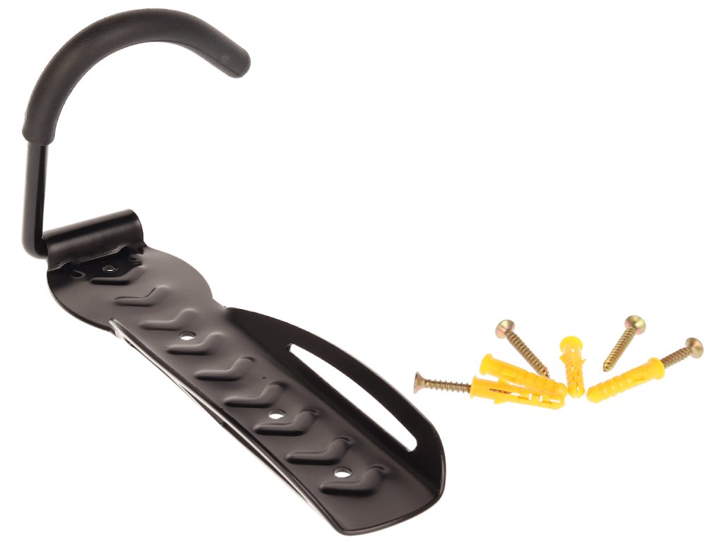 Tento hák s robustní konstrukcí a zpracováním je perfektní způsob jak zavěsit kolo na zeď bez nutnosti instalace velkých a místo zabírajících velkých držáků. Vejde se do každé garáže, chodby, nebo balkón. Kolo je možné k držáku zamknout. Dodáváno včetně montážního materiálu.