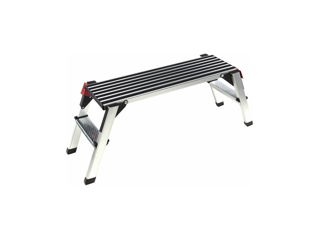 Leichte Alu-Werkbank mit Tragfähigkeit 150 kg, Maße Arbeitsfläche 950 × 380 mm, Höhe 490 mm. Klappbare Ausführung.