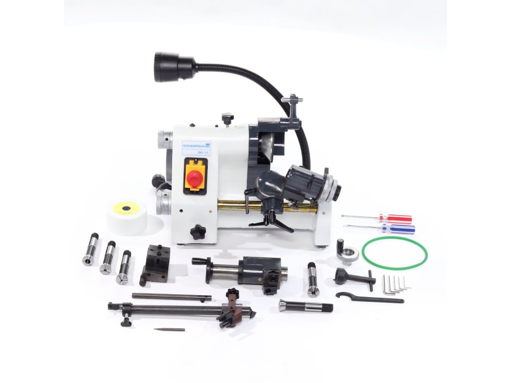 Präzisionsschleifmaschine für Fräser, Bohrer und Gravierwerkzeuge. Schleifen von Winkeln 0–180°, auch negative und Profilwinkel. Inklusive Spannzangen 4–12 mm und Schleifscheibe. Ideale Wahl für Werkstätten und Werkzeugmacher.