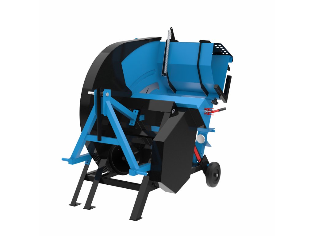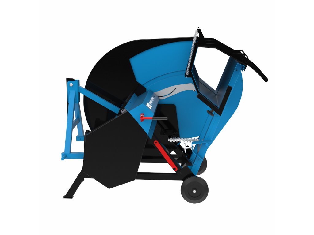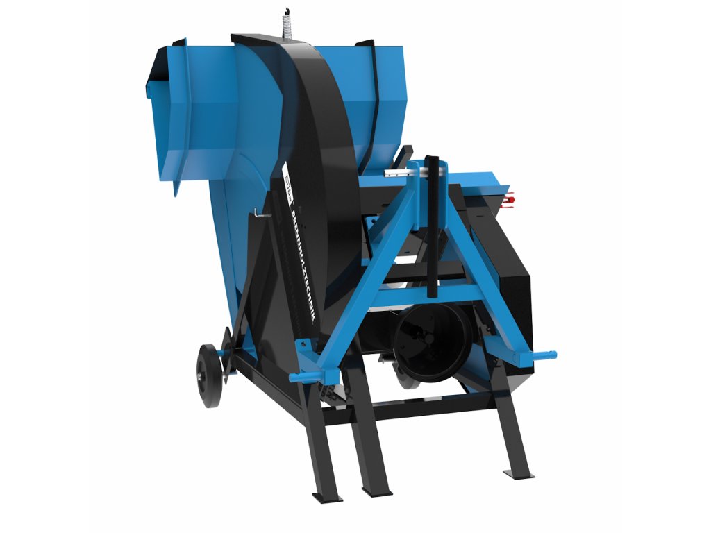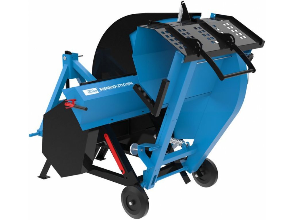 Aufbau: Geschweißter Stahlrahmen, 2-teilige Sägeblattabdeckung, Einzug mit Schutzabdeckung und Verlängerung (420 mm), ausziehbarer Anschlag für gleichmäßige Stammlänge, 3-Punkt-Aufhängung (KAT1), Transporträder. Schneideinsätze aus Hartmetall, 1.420 Umdrehungen min-1.