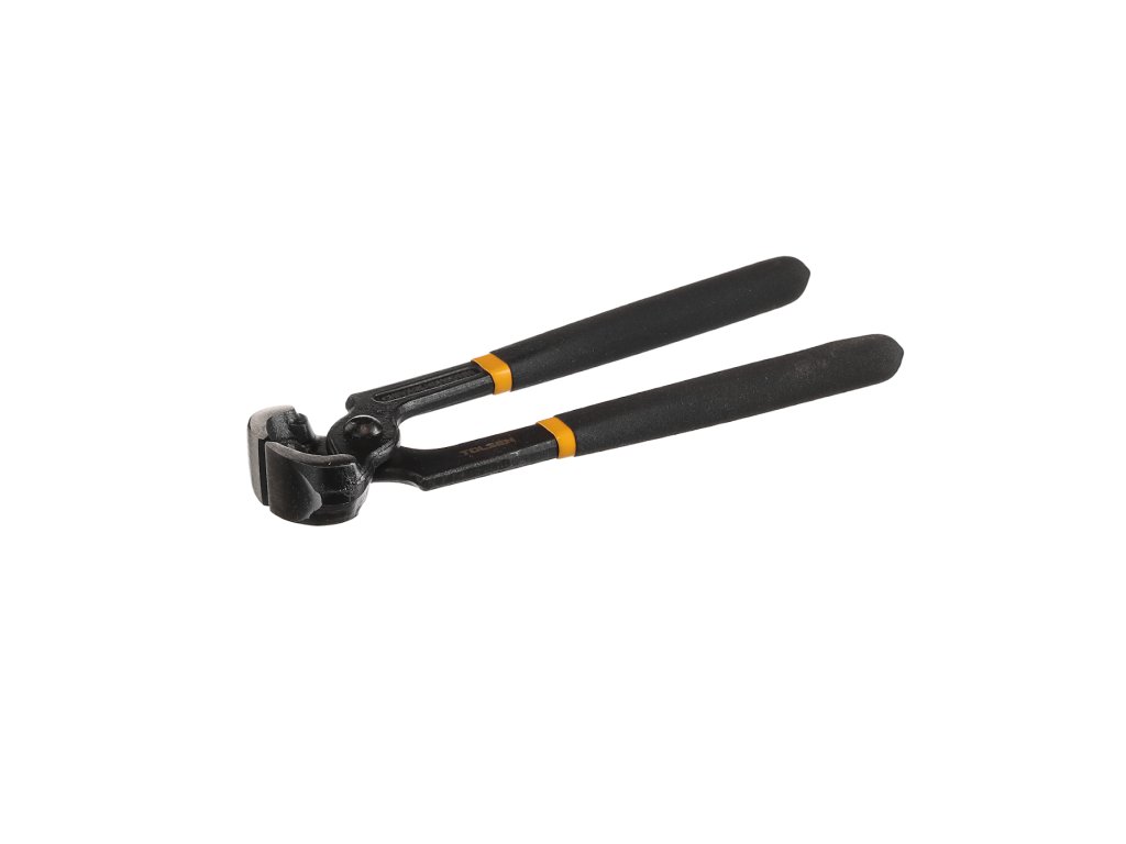 Geschmiedeter geschwärzter Stahl, geschliffene Backen, zweifarbige weiche Griffe.