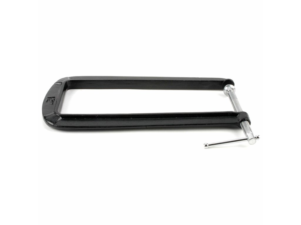 Abmessung 300 × 85 mm. Zwingenkörper aus Temperguß, verschiebbare Stifte in den Schrauben zum einfachen Festziehen, einfach schwenkbarer Schraubendruckfuß. Zwingenoberfläche hochbeständig pulverbeschichtet.